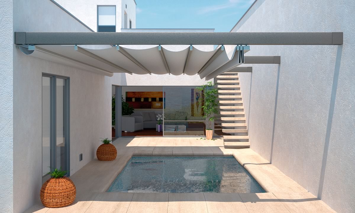 Durch ihre schlanken Einbaumaße lassen sich offene Markisen leicht ins Gesamtbild integrieren, ohne den optischen Gesamteindruck zu dominieren. Gut geeignet sind witterungsgeschützte Stellen, z. B. unter Glasüberdachung, im Wintergarten oder unter einem Dachüberstand.